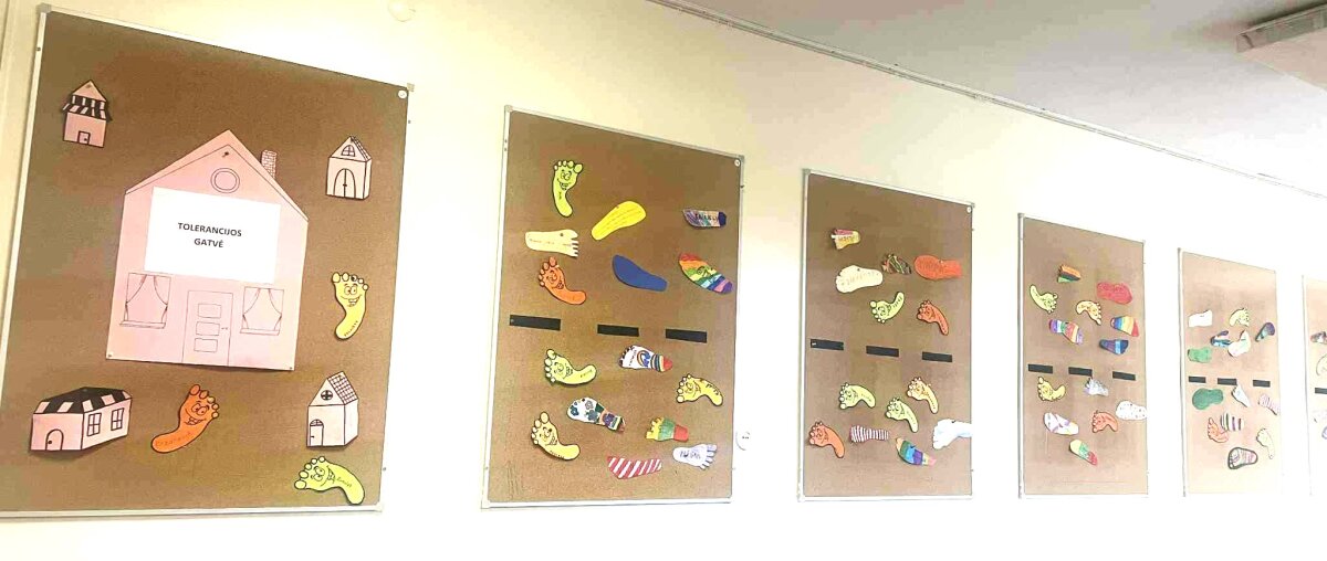 Lapkričio 17-21 dienomis gimnazija minėjo tarptautinę Tolerancijos dieną. Mokiniai iš popieriaus karpė, spalvino ir kitaip dekoravo pėdas, kurias ,, paliko" tolerancijos gatvėje. Klasės vadovai, pagalbos specialistai ir dorinio ugdymo mokytojos vedė klasės valandėles, žiūrėjo video reportažus ir diskutavo tolerancijos temomis. Mokiniai savanoriai per pertraukas vedė ,,tolerantiškus'' žaidimus.